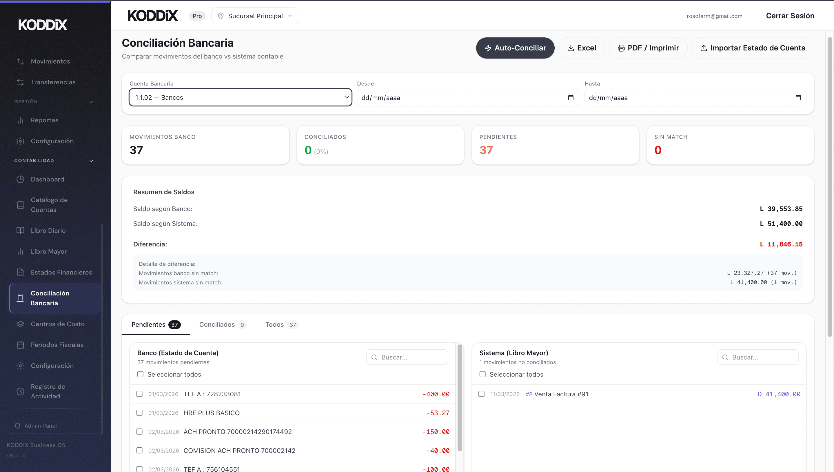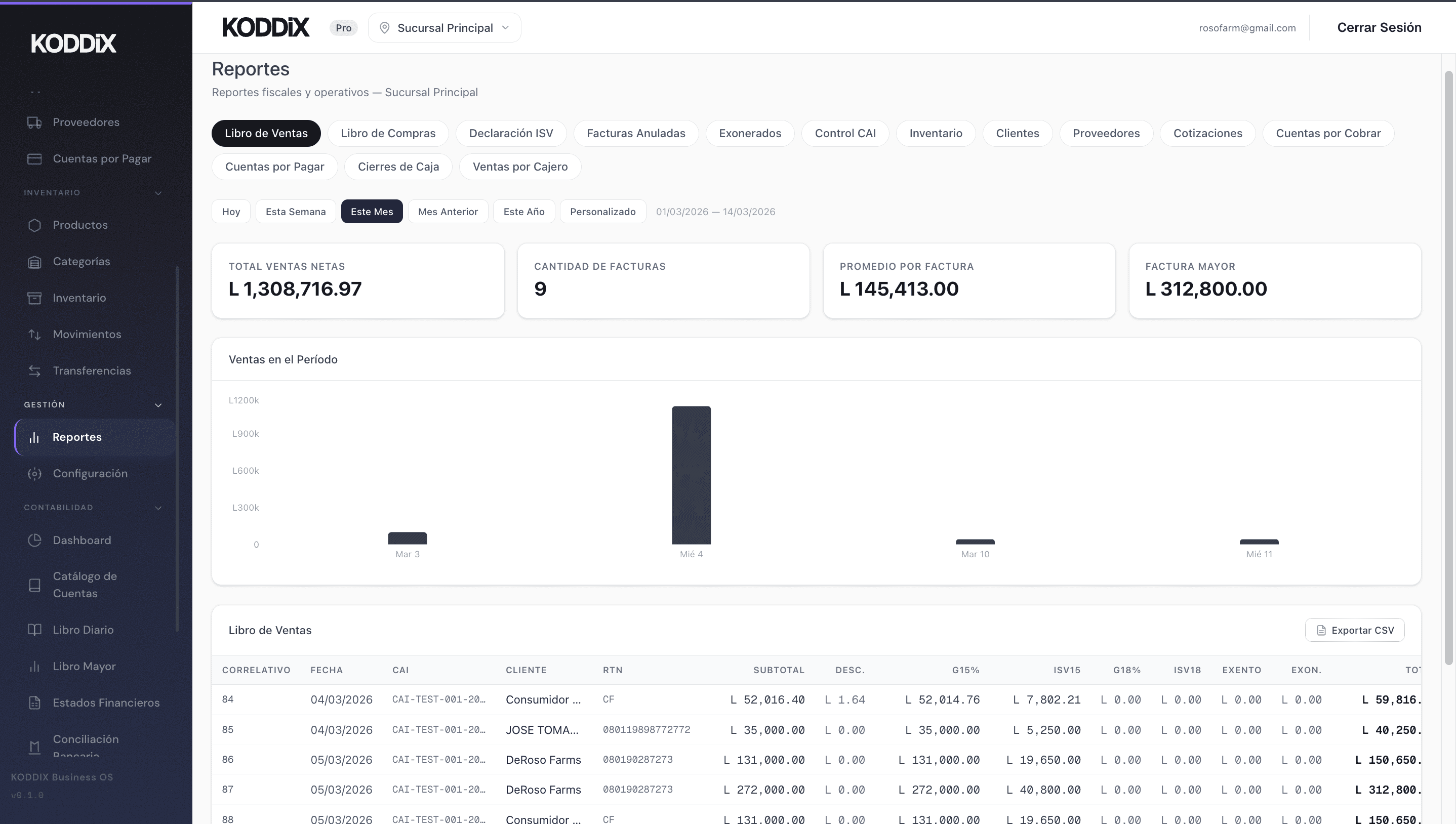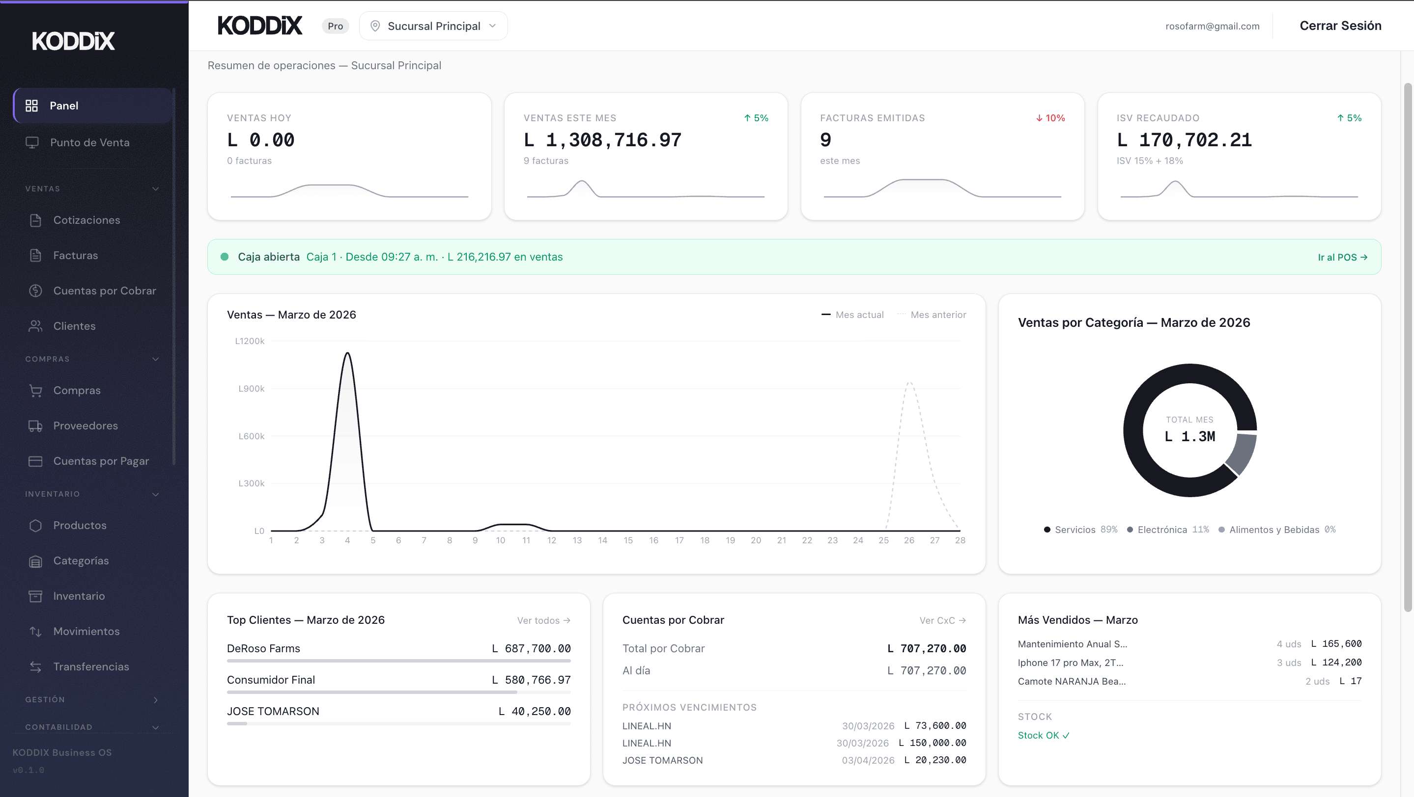 KODDIX es el sistema operativo para negocios en Honduras. Facturación con CAI, contabilidad NIIF, punto de venta, inventario multi-sucursal, conciliación bancaria y 14 reportes fiscales — sin Excel, sin papel.