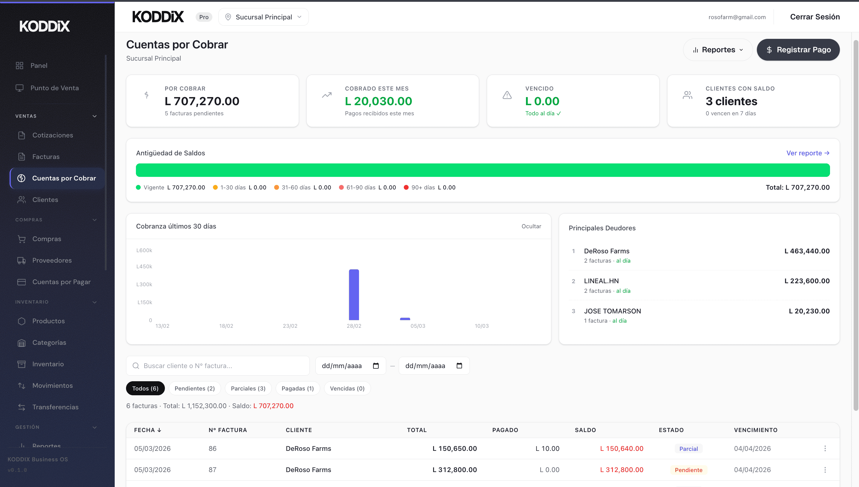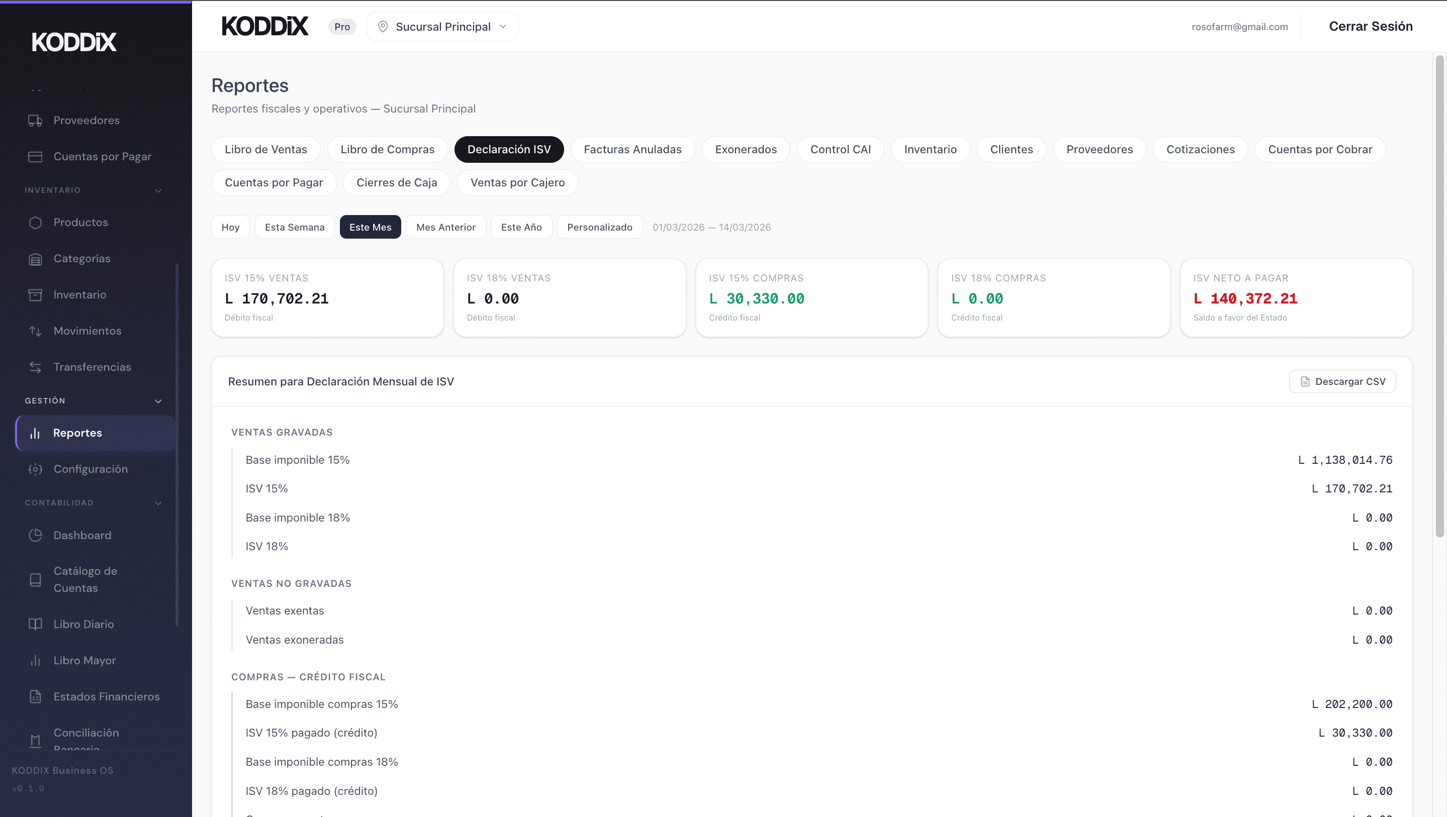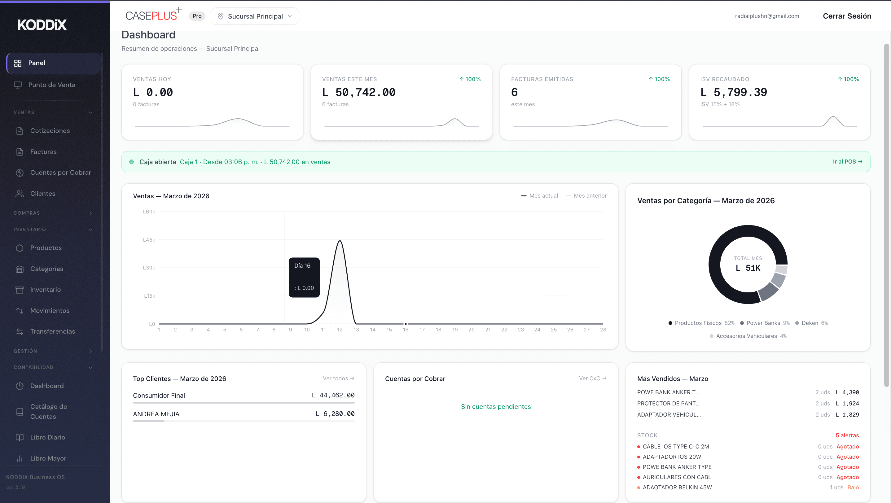 KODDIX es el sistema operativo para negocios en Honduras. Facturación con CAI, contabilidad NIIF, punto de venta, inventario multi-sucursal, conciliación bancaria y 14 reportes fiscales — sin Excel, sin papel.
